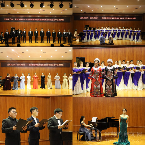 本网讯 为纪念毛泽东同志《在延安文艺座谈会上的讲话》发表81周年,5月23日晚,由省级思政教学研究示范中心——音乐舞蹈学院课程思政教学研究示范中心主办,best365手机版官方网站音乐舞蹈学院承办的“光亮引方向·青年承锋芒”——音乐舞蹈学院课程思政教学研究示范中心成果展音乐会,在音乐舞蹈学院表演厅举行。best365手机版官方网站校党委委员、副校长邹晓青,best365手机版官方网站校党委委员、副校长任洁,学校相关部门和兄弟学院领导出席。