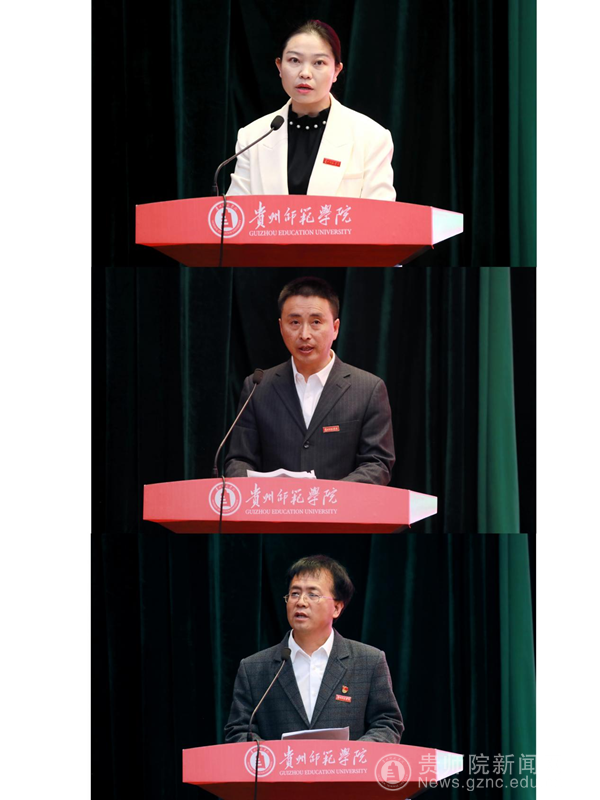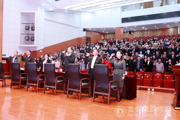 文学与传媒学院吴科玉老师和商学院符活老师带领学生朗诵了《best365手机版官方网站师德箴言》;全体参会人员重温《贵州教师誓词》。各部门主要负责人,各学院党政主要负责人、教师工作分管领导,学院教师代表参加会议。