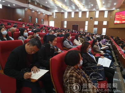 本网讯 2022年11月12日“国培计划(2022)”强师工程六枝特区、长顺县骨干教师培训项目开班典礼在best365手机版官方网站综合实训楼一楼报告厅举行。best365手机版官方网站党委副书记熊世桓、六枝特区教育局副局长周定元出席开班典礼,学校教师工作部部长王茜、化学与材料学院党委书记何毅、教育科学学院院长宋万琚、培训班班主任及177名学员参加了开班典礼,开班典礼由教育科学学院院长宋万琚主持。