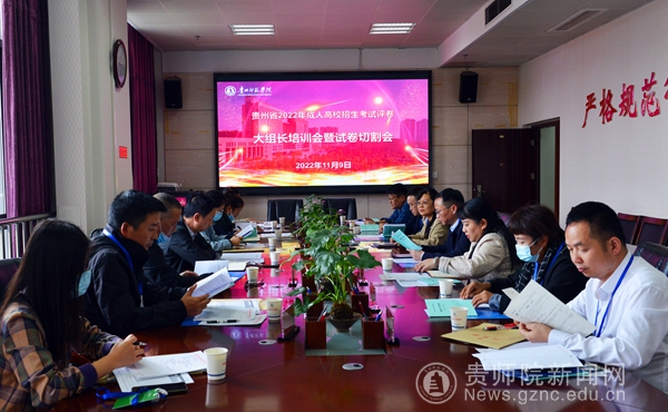 本网讯 11月9日下午,贵州省2022年全国成人高校招生考试评卷学科大组长培训会暨试卷切割会在校评卷基地三楼会议室召开。best365手机版官方网站党委副书记熊世桓、省招生考试院成招处处长黄克勇、校评卷基地办公室负责人、各相关学院负责人出席会议。会议由校评卷基地办公室副主任、继续教育学院直属党支部书记韦丹主持。