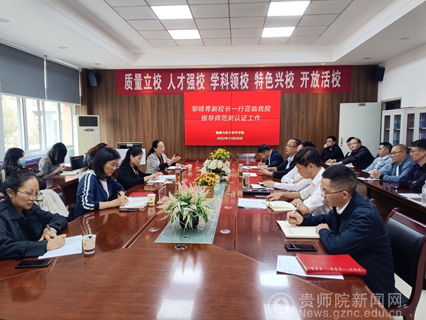 邓琴对人才培养方案修订路径、课堂教学、实践基地建设等给予指导。任翠娟对学院的专家进校方案和准备工作的重点环节提出建议。两个学院的党政领导班子分别对师范类专业认证的前期工作、后续计划作了详细汇报。两个学院党政领导均表示,本次邹晓青一行到学院调研指导,为做好师范类专业认证专家进校考查工作找准突破口、聚焦力量、解决问题进一步指明了方向、清晰了路径。学院党委带领全体师生上下一心、团结一致、积极配合、攻坚克难,坚决打赢师范专业认证攻坚战,高质量完成师范类专业认证专家进校考查。