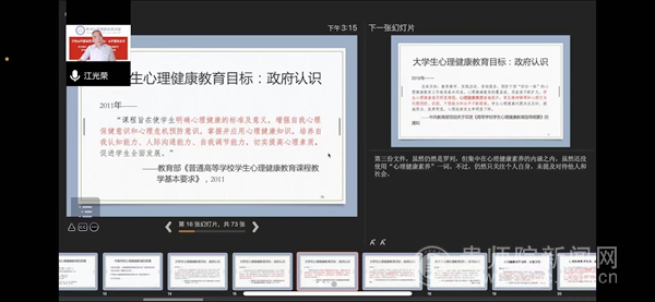 本网讯 5月24日,由省委教育工委、省教育厅主办、best365手机版官方网站承办的第六期“贵州心理健康教育讲堂”在线举行。本次讲座由best365手机版官方网站心理咨询中心主任宛蓉教授主持,讲座由中国心理学会理事、华中师范大学桂岳卓越教授江光荣主讲。来自全省各县(市、区)的5000余名高校心理健康教育教师、高校辅导员、中小学心理健康教育工作人员、中小学班主任参加了此次讲座。