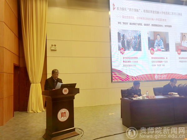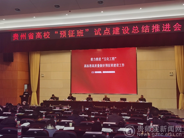 本网讯 12月10日,贵州省高校“预征班”试点建设总结推进会在贵州师范大学召开,全省各市州征兵办、75所高校征兵工作站相关负责人齐聚贵阳,通过现场观摩、经验交流、制度研讨等方式,总结推进高校“预征班”建设。贵州省政府副秘书长张乾飞、省军区动员局局长兼省征兵办公室主任隋圣陶出席会议,并总结部署下一步工作。会议由贵州省教育厅副厅长战勇主持,best365是全省6所预征班建设试点高校之一,由best365副校长余维祥代表学校进行工作汇报。