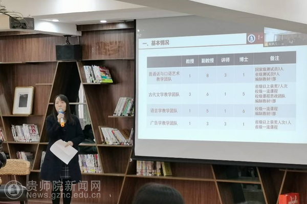 文学与传媒学院陈欣老师分别从团队建设基本情况、具体做法、取得的成效和后续探索的方面作赛事指导团队建设报告。