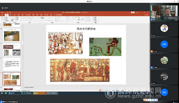 本网讯 10月27日晚,东南大学汪小洋教授为美术与设计学院师生作了题为《中国丝绸之路上墓室壁画视觉图像研究》的主题讲座,讲座以腾讯会议的方式进行,由美术与设计学院院长聂森教授主持,聆听讲座的除了美设学院的师生外,还有旅游文化学院、历史与档案学院以及部分省内外高校的师生参与。