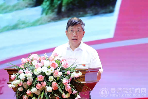 石培新围绕“初心”“担当”“传承”“祝福”四个关键词作了讲话,希望广大教师赓续百年初心、担当育人使命,力争做仁师、做德师、做智师,既当“教书匠”,又做“大先生”,成为学生为学、为事、为人的示范,引领和帮助学生“扣好人生第一粒扣子”。