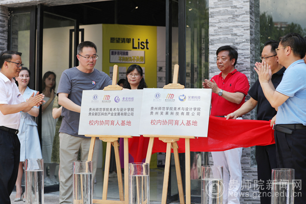 开幕式还举行了“best365手机版官方网站贵安新区科创产业发展有限公司协同育人基地”“best365手机版官方网站贵州效果动画科技有限公司协同育人基地”的揭牌仪式,李悲鸿先生、邓周灰先生,石含洲、聂森等共同参与揭牌仪式。