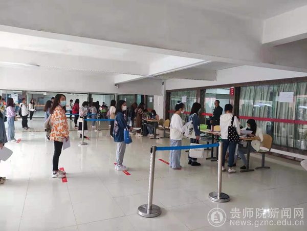 根据疫情防控的要求,考生保持安全距离等待资格审查。