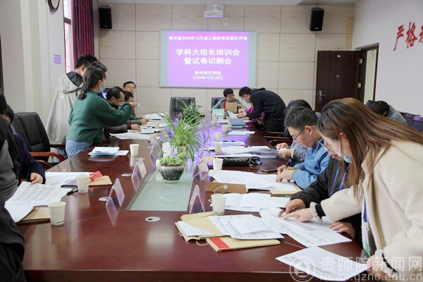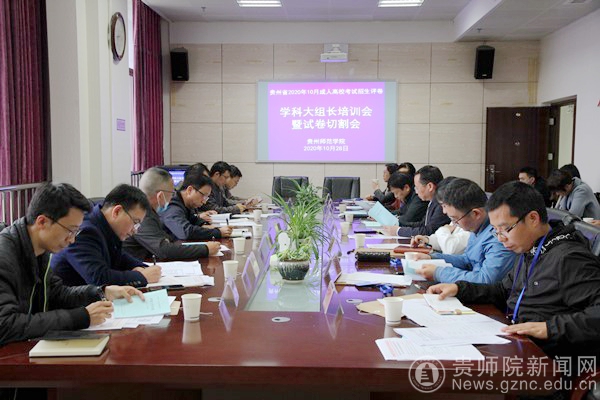 本网讯 10月28日下午,贵州省2020年10月成人高校考试招生评卷学科大组长培训会暨试卷切割会在best365手机版官方网站国家教育考试评卷基地会议室召开。贵州省招生考试院成招处处长黄克勇、best365副校长熊世桓出席会议,继续教育学院副院长何荣、各阅卷学科大组长、深圳市海云天科技股份有限公司项目负责人参加会议。会议由best365手机版官方网站继续教育学院院长赵德肃主持。