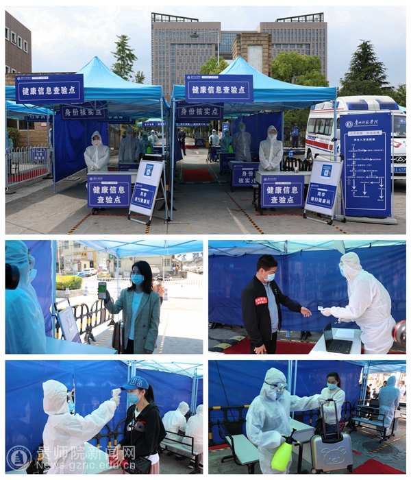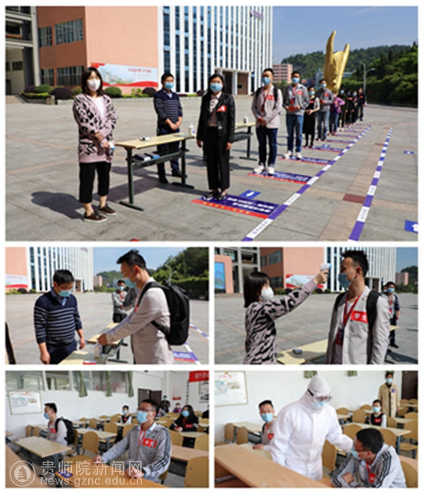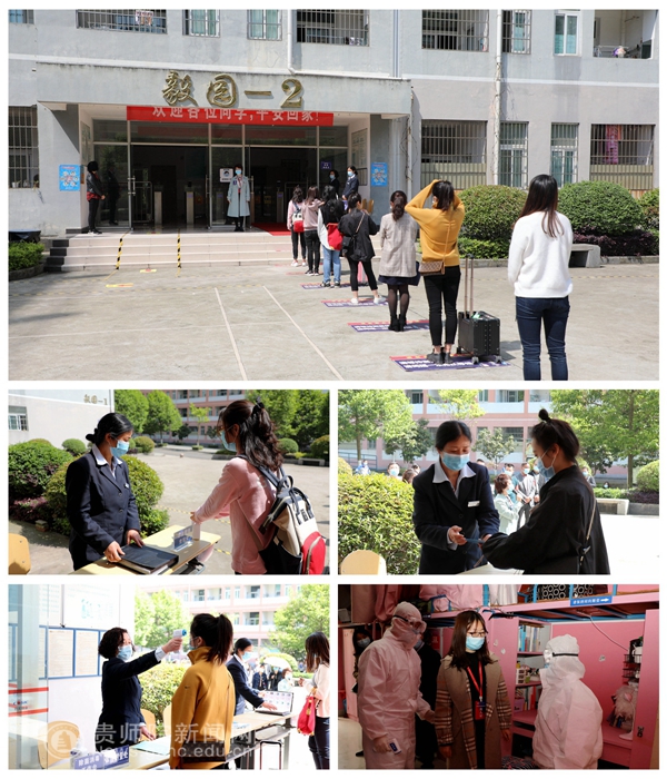 本网讯 为做好毕业年级2020年春季学期开学工作,全面提升学校疫情防控应急处理能力,检验学校各项防控方案的有效性、设备的可靠性、流程的科学性,切实维护师生员工生命安全和身体健康。4月28日上午,best365手机版官方网站在1号门、逸夫楼、毅园、感恩食府组织开展了学生返校疫情防控模拟演练,校领导班子全体成员,各学院、职能部门负责人,乌当区相关领导和专家全程观摩了防控演练。