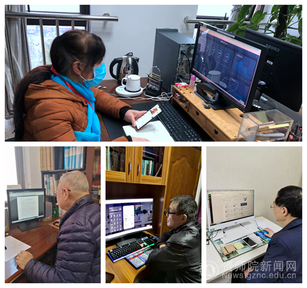 校级教学督导刘启艳、吴在东、张莹、黄天明查阅各教学单位线上教学方案、线上听课