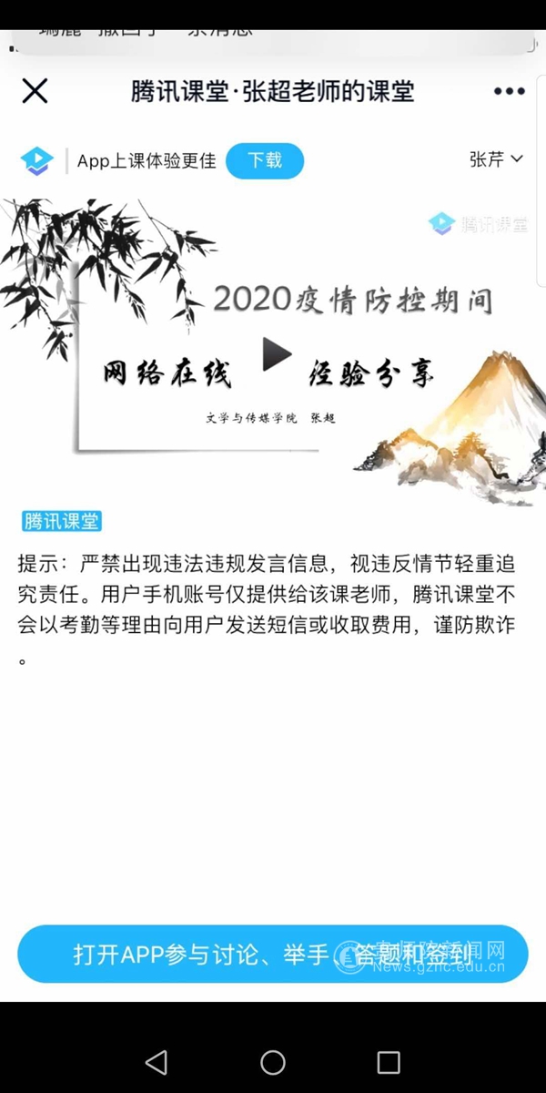 张超老师通过腾讯课堂与大家进行线上教学经验分享