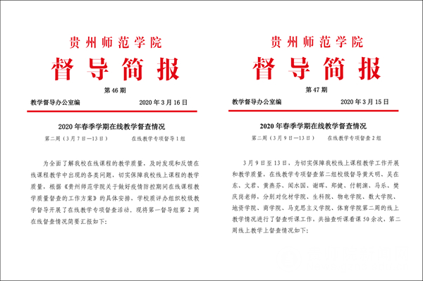 本网讯 为贯彻落实教育部,贵州省教育厅“停课不停教、停课不停学”的要求,克服新型冠状病毒疫情影响,学校制定了《best365手机版官方网站2019-2020学年第二学期疫情防控期间延期开学在线教学工作方案》,鼓励任课教师充分发挥网络教学资源优势,认真做好各项教学准备工作,最大限度保障广大师生疫情防控期间的课程教学和人才培养工作。3月2日起,线上教学全面开展,为切实保障在线教学质量,及时掌握在线教学情况,校院两级监控联动,“三化”并举 ,全力保障教学质量。