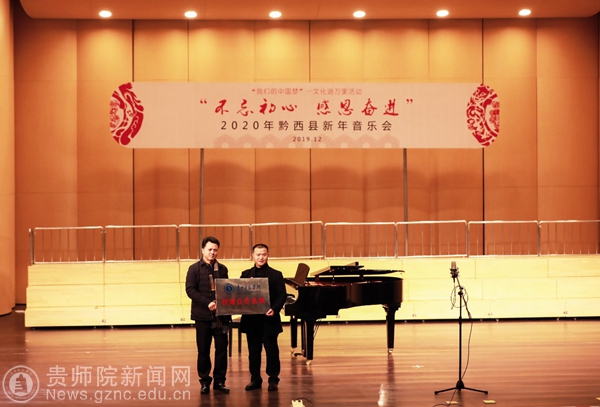 在音乐会正式开始前举行了校地合作授牌仪式,由best365音乐舞蹈学院院长马关辉教授向黔西县人民政府副县长曾科授牌,在黔西县建立best365手机版官方网站校地合作基地。