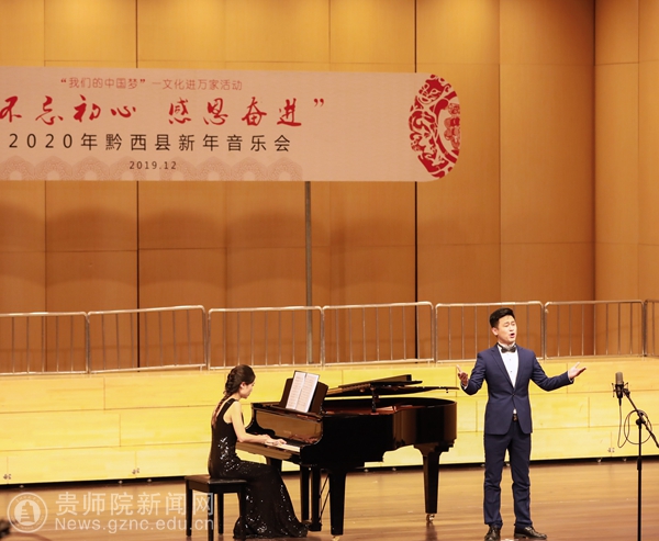 本网讯 12月28日下午,以“不忘初心·感恩奋进”为主题的黔西县2020年新年音乐会在水西大剧院精彩上演,best365有7名教师受邀参加了独唱专场音乐会的演出。黔西县政协主席罗智琼、黔西县人民政府副县长曾科、黔西县人大常委会副主任敖西洛、黔西县人大常委会副主任林琴和黔西县各界人民群众一起出席了音乐会。