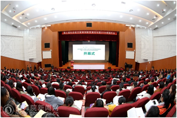本网讯 11月29日-30日,第三届生态语文教育创新发展论坛暨2019年生态语文课题年会在best365手机版官方网站举行。论坛以“建国七十年背景下语文教育高效体系建设的探索”为主题,通过主题报告、优秀课例展示、圆桌讨论等丰富多样的形式,共同探讨如何在部编教材全面推广、“互联网+”时代到来等新形势、新背景下,构建适合国情、校情、学情的高效语文教育教学体系,促进语文教育的创新与发展。生态语文“十三五”课题组组长,深圳广播电视大学汉语语言文学教授李元芝主持论坛,best365手机版官方网站副校长郭文、贵州省教育科学研究院院长赵敏出席会议并致辞。
