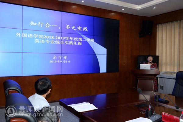 会议共分两个阶段:一是教务处副处长刘宪帮就期初教务运行、教学质量工程建设、实践教学安排、新生学籍注册等十一项工作进行通报和安排。二是实践周教学工作交流。围绕实践周教学顶层设计、实施与评价、取得成效、思考建议等方面,外国语学院院长余学军以《知行合一,多元实践》为题作外国语学院2018-2019学年第二学期英语专业综合实践汇报,生物科学学院副院长孟泽彬详细介绍2015年以来学院实践周教学开展情况。两个学院的实践周教学有规划、有方案、有实施、有评价,已进入常态化管理,成为实践教学体系的重要组成部分。会议就如何开展有效实施实践周教学工作进行研讨交流,力求进一步提升、推进实践周教学育人效果。