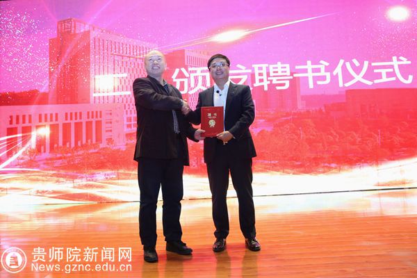 郁钟铭给唐杨松颁发聘书