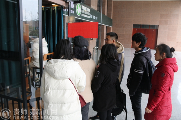 同学们排队等待体验朗读亭