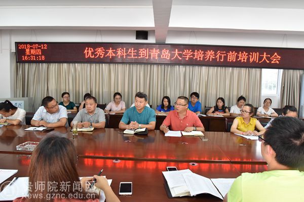 刘宪帮宣读了《2018年选拔优秀本科生到青岛大学培养学习实施方案》和《关于选派代慢慢等21名同学到青岛大学培养学习的通知》(贵师院党政办发〔2018〕16号)相关文件,就选拔学生赴青岛大学培养学习作了动员讲话,希望同学们参照best365本科人才培养方案,从个人兴趣和发展规划出发,合理、科学制定个性化的学习计划,在交流学习期间不断充实和提高自己,并要求同学们严格遵守双方学校的规章制度和纪律,用心体验第二校园生活,努力学习,刻苦钻研,学成归来。