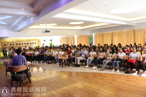 主题分享会上吴俊围绕“做一个有教育情怀的教师”这一主题,从教师是什么、有教育情怀的教师应该具备什么样的基本素养、给师范生的几点建议等方面,结合自身丰富的教学、教育经验对学生在成长为一个优秀教师方面会遇到的困惑、难题进行了针对性的辅导和帮助。他引经据典、金句频出,语言风趣、幽默,讲到精彩之处掌声不断,引发了同学们强烈的共鸣和深刻的思考。随后的交流提问环节,围绕同学们提出的“怎么在大班制下做到因材施教”、“怎么教育学习差和学习好的学生”等问题深入浅出、通俗易懂的进行了分析和解答。