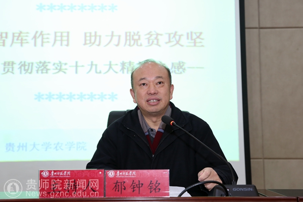 本网讯 1月10日,为深入学习党的十九大精神和习近平总书记参加贵州省代表团讨论重要讲话精神。学校特别邀请了贵州大学农学院三级教授、五四青年奖章获得者、贵州年份英雄潘学军到best365做“发挥智库作用,助力脱贫攻坚”专题讲座。全体校领导出席了会议,学校处、科级干部聆听了讲座,会议由校长郁钟铭主持。