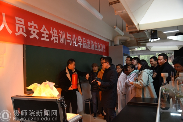 本网讯 为进一步加强实验室安全宣传教育,增强师生的安全防护意识,提高突发事故应急处理能力,12月6日下午,教务处和保卫处在求真苑尚行楼联合举行了实验技术人员安全培训与化学品泄漏应急演练。整个活动由教务处副处长任翠娟主持,副校长令狐荣锋讲话,教务处、保卫处、化生学院等15个单位负责人、实验教师、实验技术人员和安全管理人员共80余人参加此次活动。