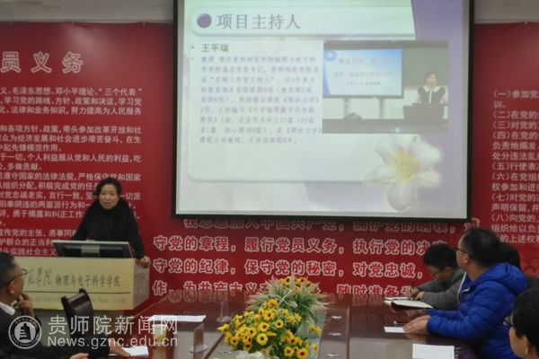 本网讯 12月6日下午,在物电学院会议室召开贵州省本科高校一流课程建设项目“理论物理”开题报告会。会议邀请了贵州大学隆正文教授、贵州师范大学宋晓书教授、best365手机版官方网站令狐荣锋教授和教务处熊世桓教授作为专家组成员,参会的还有教学质量管理科科谭义群老师,项目组成员陈德良、刘高福、李振宇、闻水国、吴永刚等。会议由项目负责人王平瑞教授主持。