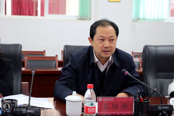 校党委书记石培新致欢迎辞并介绍学校情况