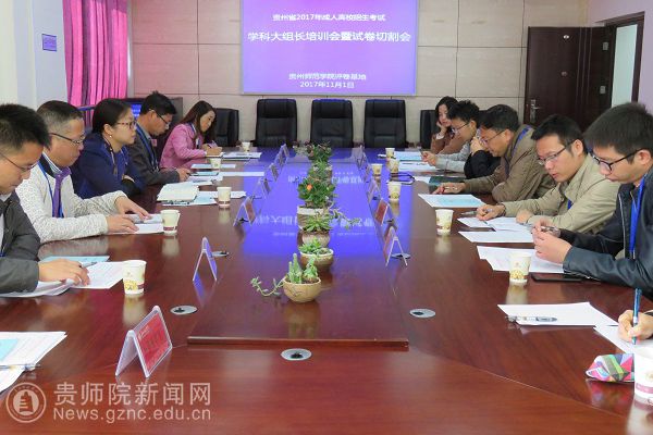 本网讯 11月1日下午,我省2017年成人高校招生考试评卷学科大组长培训暨试卷切割会在best365评卷基地会议室召开。省招生考试院成招处副处长郝幸,校评卷基地办公室主任、继续教育学院院长赵德肃,副院长王先华出席会议,各学科大组长、学科组长,深圳市海云天科技股份有限公司项目负责人等参加了会议。会议由赵德肃主持。