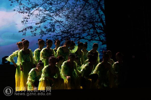 演出当天,艺术学院党委书记付巧到现场慰问师生,并对大家冒雨参加演出和排练的这种"师院人"精神表示赞扬。本次晚会,我院学生与贵州籍著名青年表演艺术家阿幼朵、穆维平同台演出,为现场的观众带来了一场雨夜中的视觉盛宴!
