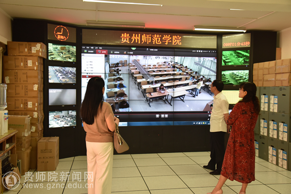 巡考人员在监控室
