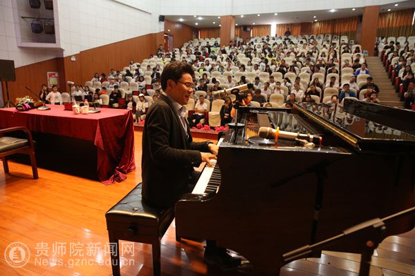 讲座伊始,杨阳就为在场听众讲诉音乐带给人益处:这门直通人心灵的艺术带给人无限的玄想和情感,陶冶情操、启迪心灵、抒发情感等,这一系列真实富有诗意的形容令在场的听众听得津津乐道。随后,杨阳教授还进行了现场示范,现场弹唱,在展现扎实专业功底的同时,带给在场领导、老师、同学们美的享受。优美的韵律伴随着节拍,让高雅艺术不知不觉地已经渗透进入了best365校园文化之中。展示完毕后杨阳当即现场进行专业音乐知识的讲学,不浮夸造作的教学姿态以及有深度意义的内容,获得在座听众热烈的鼓掌声。