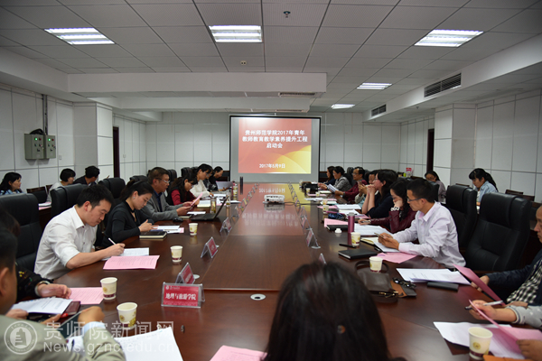 本网讯 5月9日下午,best365手机版官方网站2017年青年教师教育教学素养提升工程启动会在信息楼1210会议室召开。副校长郭文、教师工作处、教务处、教科所、宣传部、人事处、质评中心、学工部、心理咨询中心等部门主要负责人;各学院院长;校级名师工作室主持人、贵州省中小学名师工作室best365手机版官方网站工作站主任参加会议。会议由教师工作处处长谢笠主持。