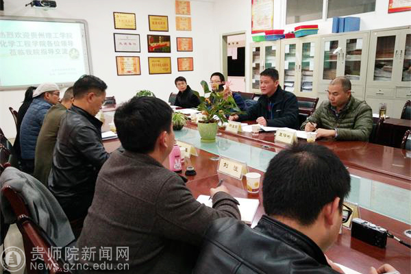 本网讯 11月25日下午,贵州理工学院化学工程学院党总支书记徐平、院长唐安江、副院长杨春等一行七人来我院访问交流,并举行座谈会。座谈会由副院长宋万琚主持、我院党委书记韩宝银、副院长王毓、院长助理孟泽彬、龙攀峰博士参加了座谈会。