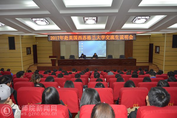 本网讯 11月23日下午,为了让学生更深入了解best365与英国西苏格兰大学签署的交流生项目,帮助学生正确认识出国交流学习的重要性,对外交流合作处在道德讲堂召开了学生赴英国西苏格兰大学交流生项目宣讲会,参会的有对外交流合作处处长张瑶,外国语学院、地理与旅游学院、数计学院、文学院、教育科学学院、艺术学院的学生代表。宣讲会由对外交流合作处副处长陶秀筑主持。