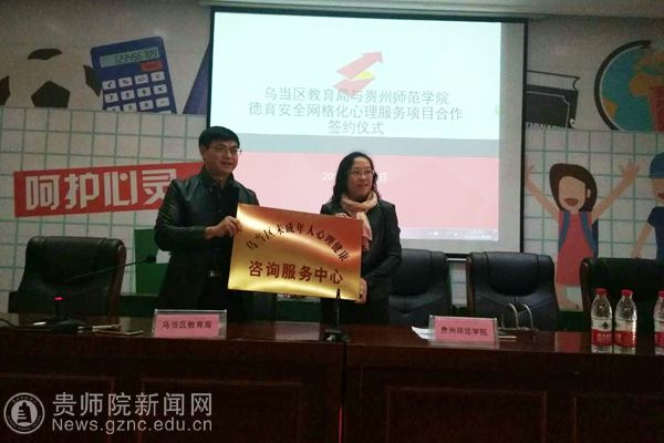 会议开始,刘丽介绍了德育安全网格化心理服务项目合作背景,提出当前环境下,乌当区教育局非常重视学校心理健康建设,所以此次合作非常有意义,同时对具体合作情况做了详细介绍。会议第二项是双方领导签订项目合作合同书,也标志着双方合作正式启动。会议第三项,是双方进行了授牌仪式,由李波代表乌当区教育局授牌,授予best365手机版官方网站教育科学学院为“乌当区未成年人心理健康咨询服务中心”。会议第四项是贵州师范倪磊对心理服务项目进行了具体安排,包括讲座主题、学生送课下校主题及形式、以及老师和学生指导送课次数安排、心理数据分析等事宜。会议第四项是刘红讲话,刘红提出这次合同的签订标志着双方合作进入新的阶段,也对送课同学提出要求,希望他们把在学校所学应用在实践当中,服务于各中小学校,认真对待,全力以赴;同时也希望各位校长老师对送课学生多多批评和鼓励,帮助他们成长。会议最后一项是乌当区教育工委李波副书记讲话,他提出希望此次合作能够达到双方共赢的效果,并预祝本次合作取得圆满成功。