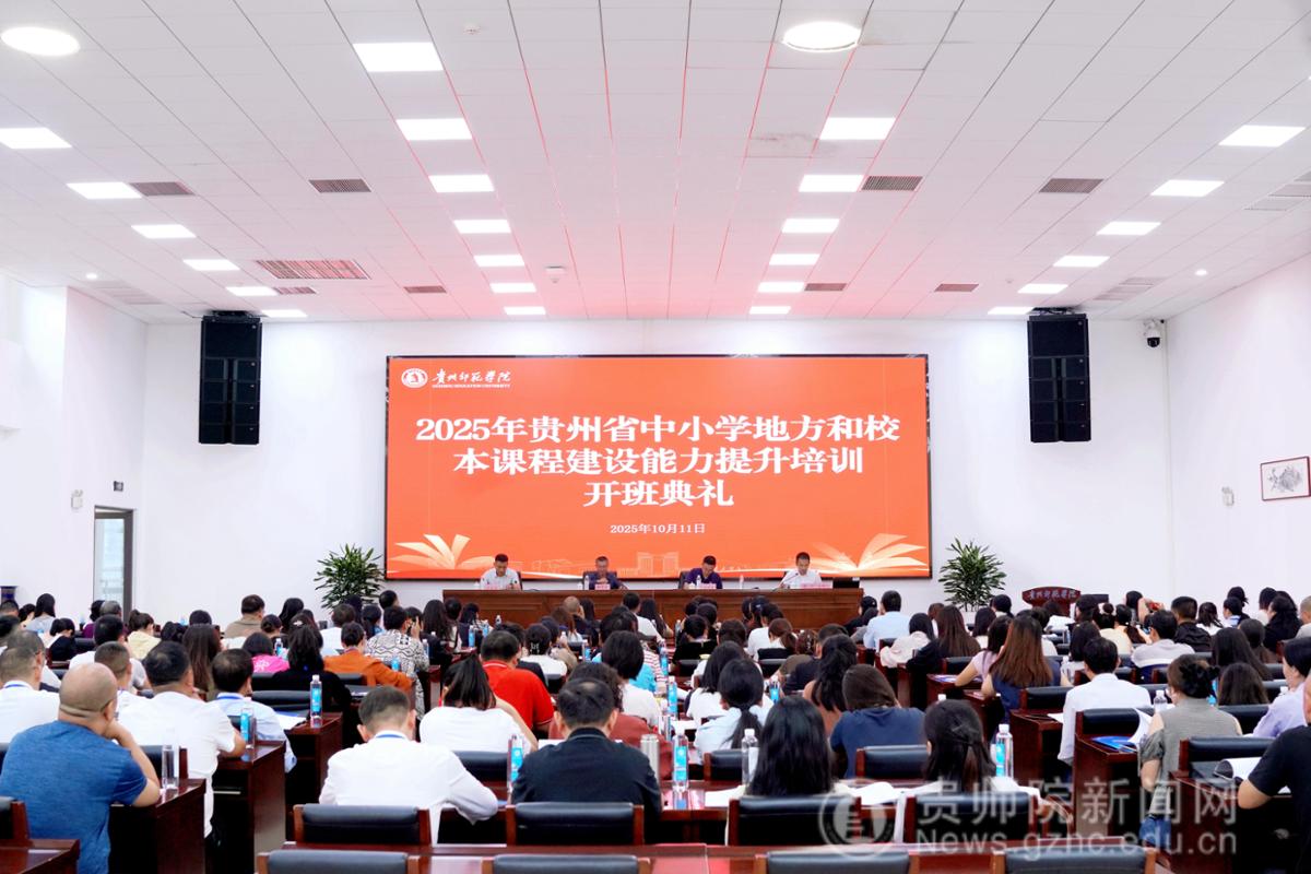 为切实加强中小学地方和校本课程建设,提升教师课程教学能力。 2025年10月10日至13日,由省教育厅主办、best365手机版官方网站承办的全省中小学地方和校本课程建设能力提升培训班在best365成功举办,各市(州)、县(市、区)教研员及中小学地方和校本课程骨干教师200余人参加了此次培训会。best365手机版官方网站党委常委、副校长(正厅长级)赵守盈,以及省教育厅教材处、贵州教育发展研究中心负责同志出席了开班典礼,仪式由贵州教育发展研究中心主任(兼教育科学学院副院长)袁川主持。