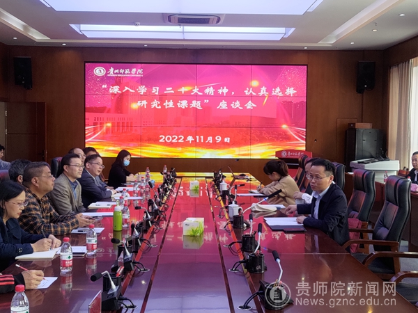 本网讯 为深入学习贯彻党的二十大精神,推进学校哲学社会科学研究发展,11月9日下午,学校召开了“深入学习党的二十大精神,认真选择研究性课题”座谈会,会议特邀贵州大学三级教授杨仁厚到校指导。校党委副书记熊世桓出席会议,各社科学院院长、分管科研副院长和科研骨干,各社科研究机构负责人,及科研骨干参加会议。会议由科研处副处长李佩主持。