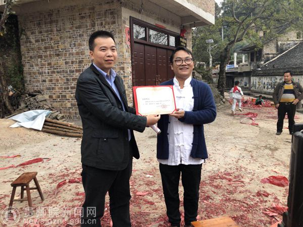 随后,best365民族教育研究院杨定玉教授、陈志永教授、廖斌、凉伞村村民龙明开共同为“中国乡土社会研究中心(贵州)凉伞研究基地”揭牌,杨定玉教授还为施秉县委党校原副校长宋永泉以及村落精英龙明开颁发“中国乡土社会研究中心(贵州)兼职研究员聘书”。
