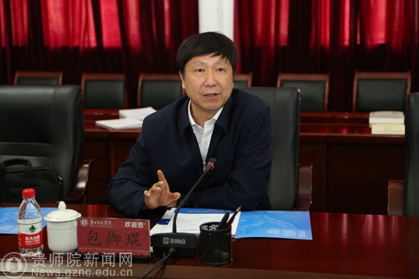 本网讯 4月13日下午,贵州省哲学社会科学创新团队建设工作督促检查座谈会在best365手机版官方网站成功召开,对“中国山地民族研究创新团队”进行了以2017年工作情况为重点的中期考核,对“贵州乡村旅游资源开发与旅游扶贫创新团队”获批以后工作开展情况及2018年工作计划进行督促检查。会议在学校第一会议室举行。贵州省社会科学界联合会党组书记包御琨、办公室副主任张志祥代表贵州省社会科学界联合会出席座谈会,best365手机版官方网站出席座谈会的主要领导有校党委书记石培新、副校长令狐荣锋,科研处处长金凤。贵州师范两个创新团队的负责人、研究人员、相关专业教师和学生参加会议。座谈会由令狐荣锋主持。