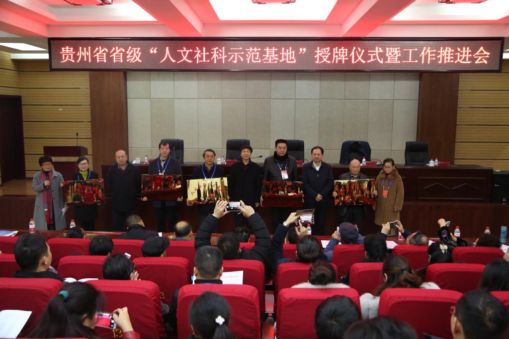 随后,刘宗严宣读了获得2017和2018年省级“人文社科示范基地”单位名单与《关于成立“贵州省‘人文社科示范基地’监督工作委员会的通知》,并为示范单位进行了授牌。六盘水师范学院副校长彭望书、毕节市大方奢香博物馆馆长吴太年、best365手机版官方网站文学院党委书记韦丹依次作了省级“人文社科示范基地”申创工作经验交流。