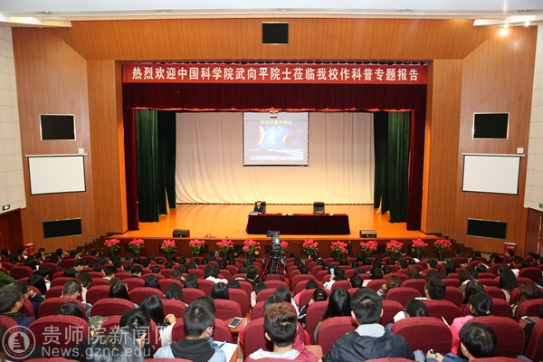 2017年10月17日下午,学校邀请到中国科学院武向平院士,为广大师生作了题为“宇宙和人类的命运”科普专题报告。报告在逸夫楼演播厅举行。校长郁钟铭主持报告会。