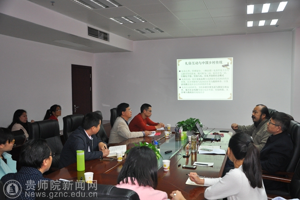 本网讯 受贵州旅游研究院邀请,11月21日山东大学中国乡土社会研究中心主任、博士生导师张士闪教授做客贵州旅游研究院第九届山地旅游学术研讨会,在best365信息楼802会议室作了题为《礼俗互动与中国乡村传统》的学术报告。本次研讨会由贵州民族学与人类学高等研究院承办,校长助理徐凤增主持了研讨会。贵州民族学与人类学高等研究院、地理与旅游学院、传媒与设计学院以及历史与社会学院等单位部分师生参加了学术报告会。