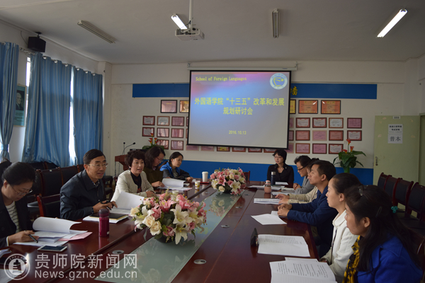 何林认真听取了外国语学院和大学外语教学部关于“十三五”改革和发展的规划,对我院在以往工作中取得的成绩给予肯定,并对我院“十三五”改革和发展规划给予指导。他说:在新的历史发展时期,在“一体两翼”学科定位下,外国语学院要进一步加强对学校转型的认识,在新时期做好应用型人才培养工作。一是在学科建设方面,要着重完善学科体系建设,使学科建设与服务经济社会相适应。二是如何扭转外语学科特色不明显的相对劣势,他说“外语教学除关注语言本身以外还应更多关注人文、教学、科研,关注与地方发展的大格局之间的联系等”。三是教师们要认真思考个人发展与学院、学校乃至全贵州的发展紧密联系问题,同时学院要有大的路线图,解决老师们 “走哪里?怎么走?”的问题。四是学院要积极吸纳各种资源、认真搭建平台,让每个老师在教学、科研等方面都有展示自己的舞台。例如:国际导游的培养、英语教育在跨文化交际中的角色和作用、华文教学基地等等。最后,外国语学院要将狠抓人才队伍建设,充分利用人才优势,在教育教学质量、科研、学科专业建设、创新创业、对外交流合作、服务地方经济文化等方面凝练新篇章。