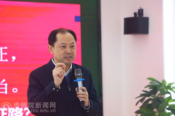 视频播放完毕后,校党委书记石培新从遵义会议的历史意义、精神内涵及青春实践三个维度展开精彩讲授。他回顾了遵义会议召开的背景,讲述了遵义会议召开的具体过程,进一步解读了遵义会议的重要意义。石培新书记特别强调,遵义会议的历史经验充分证明,党中央有核心、全党有核心,才能把全党牢固凝聚起来,进而把全国各族人民紧密地团结起来,推动全党全国各族人民在党的旗帜下团结成“一块坚硬的钢铁”,形成万众一心、无坚不摧的磅礴力量。面对青年学子的成长困惑,石培新书记引导大家,既要有扎实专业基础,更要有坚定理想信念——尤其是思政专业学生,必须锤炼过硬的理论素养和政治定力,并鼓励同学们将个人成长融入国家发展大局,走好新时代长征路。