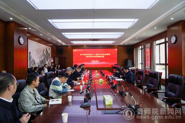 韦维结合工作实际,并就深入学习贯彻全会精神提出要求:一是要加强研究阐释,把学习贯彻全会精神同领会习近平总书记关于全面深化改革的一系列新思想、新观点、新论断结合和贯通起来,积极对接国家战略,立足贵州“三者”定位和“五期”方位,进一步明晰办学定位,聚力特色发展,以进一步深化改革激发活力,破解发展难题;二是要吃透教育科技人才体制机制一体改革的要求,聚焦“学科和学位点建设、人才培养质量提升、凸显教师教育特色、深化体制机制改革”等关键性的工作,做实深化改革的调查研究,找准关键领域和薄弱环节,明确改革目的,做好改革规划。三是要夯实发展根基,持续构建和完善学校章程、党委领导下的校长负责制、教职工代表大会制度、学术委员会制度等,涉及依法治校的几大根本性制度建设;要推进发展动力源改革,推动校院两级管理体制改革,激发学院办学活力和发展潜力,实现学校、学院、教师形成发展共同体、利益共同体;要扎实推进数字校园建设,利用大数据、人工智能等手段,保证决策的科学化、提升管理的精确度,破解改革中出现的各种效率问题。