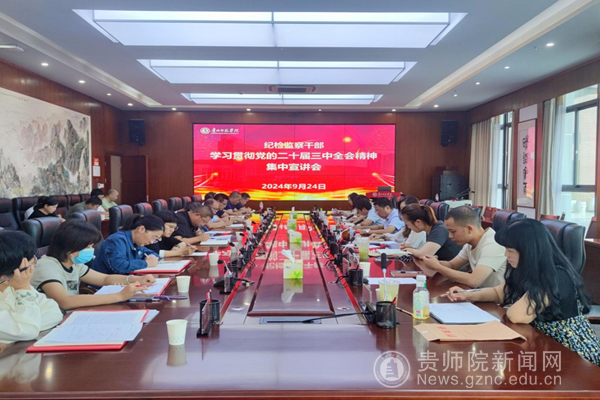 宣讲会上,韩兵兵围绕“深入学习贯彻落实党的二十届三中全会精神,不断开创best365手机版官方网站改革发展新局面”主题,分别从全会的基本情况、党内外及国内外对全会的评价、习近平总书记在党的二十届三中全会上的重要讲话精神、全面深化改革的重要性和必要性等方面,结合贵州省情,对全会精神进行了解读。韩兵兵指出,纪检监察干部要以高度的政治自觉和强烈的使命担当学习好宣传好贯彻好党的二十届三中全会精神,衷心拥护“两个确立”,忠诚践行“两个维护”,立足贵州省和best365手机版官方网站实际,坚定不移发挥纪检干部监督执纪保障发展作用,切实把学校各项事业发展与进一步全面深化改革的战略部署结合起来,为谱写中国式现代化贵州新篇章贡献师院力量。