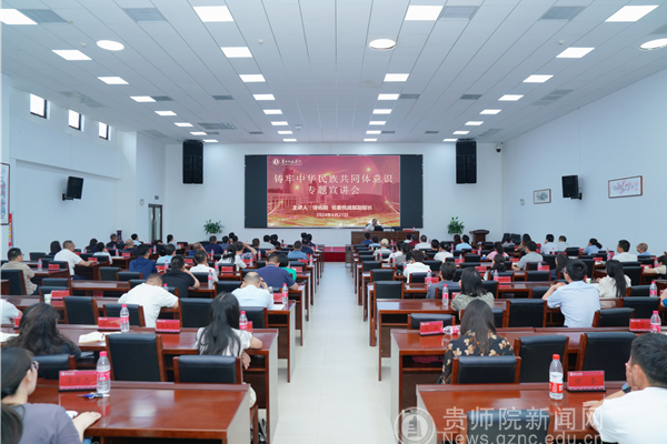 本网讯 为深入贯彻落实习近平总书记关于加强和改进民族工作的重要思想,进一步提升学校开展铸牢中华民族共同体意识宣传教育工作水平,6月21日,学校举办铸牢中华民族共同体意识宣讲报告会,本次会议邀请到中共贵州省委统战部副部长徐佑刚作主题宣讲。学校党委书记石培新,校长韦维,党委副书记龙健,校党委委员、纪委书记韩兵兵出席会议。会议由学校党委书记石培新主持。