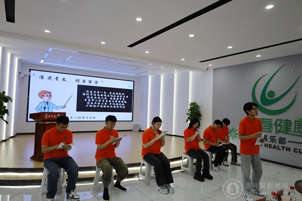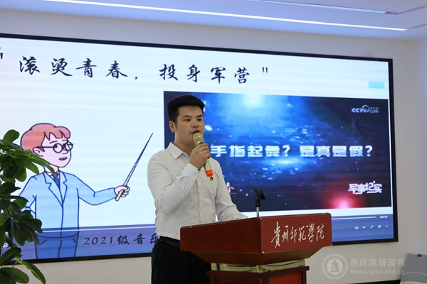 随着一段CCTV7对我院2020级音乐学专业入伍大学生刘钦军营纪实专访视频的插入,活动跳转至“青年大学习”主题场景。由支部学生党员、团员和青年们原创的歌曲《滚烫青春 投身军营》用新说唱的形式,普及了参军知识,开展了征兵动员,在场学生沉浸式感知到了参军的光荣和使命,并期待自己未来也能投身军营,登上为国效力的大舞台,继续发光发热。